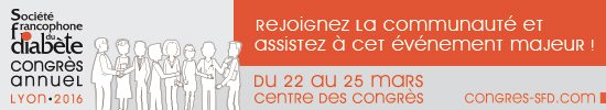 Du 22 au 25 mars prochain, les PRESTATAIRES ASSOCIATIFS seront heureux de vous accueillir à Lyon sur leur stand (n°40) à l’occasion du Congrès 2016 de la Société Francophone de Diabète pour vous présenter leur activité diabète.